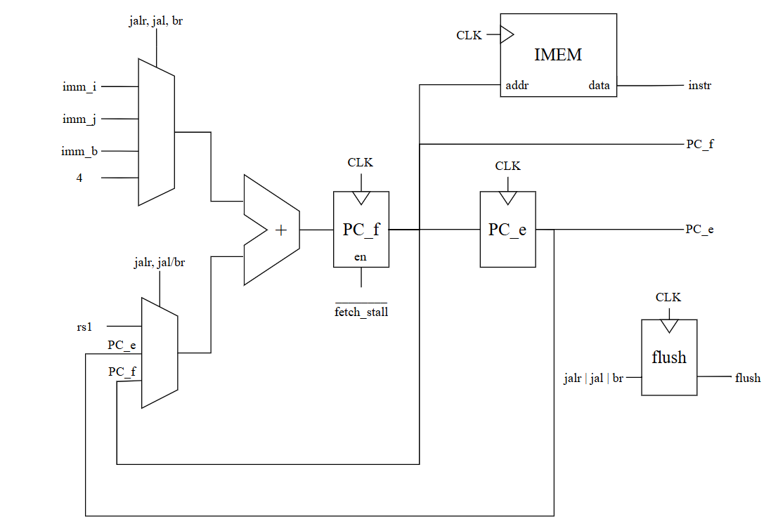 - Instruction Fetch: A dedicated ripple-carry adder calculates the next PC so fetching can happen alongside execution.